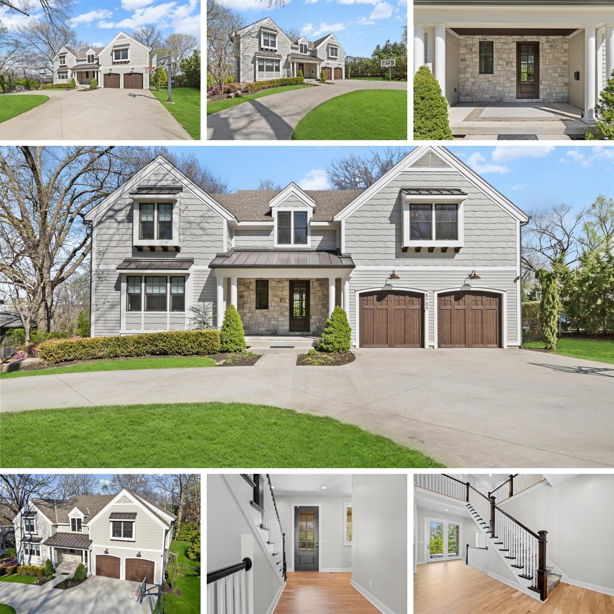 The circle drive and covered entry set the tone before you ever walk through the door. A porch with custom wood ceiling overhead, metal roof accent catching the light, and brand-new landscaping that frames the lot with the kind of privacy most buyers spend years trying to create. There is plenty of room for your vehicles and toys with a three car garage.